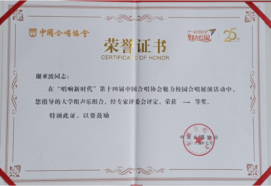 谢亚波指导团队荣获国家级合唱展演一等奖