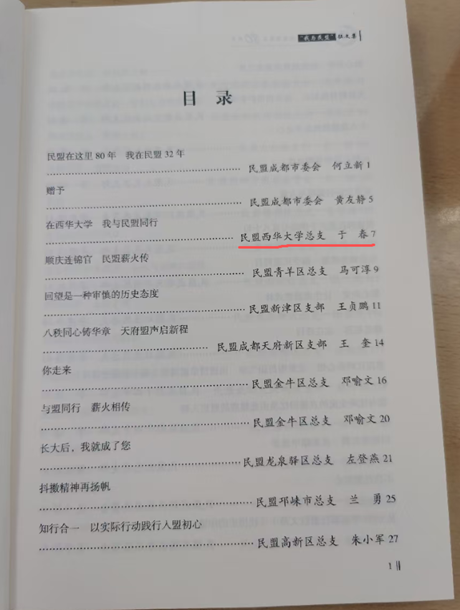 民盟西华大学总支主委于春在庆祝成都民盟成立80周年系列活动中获得知识竞答“答题之星”(最佳个人)。其撰写的现代诗《在西华大学 我与民盟同行》在“我与民盟”征文活动中荣获优秀作品。